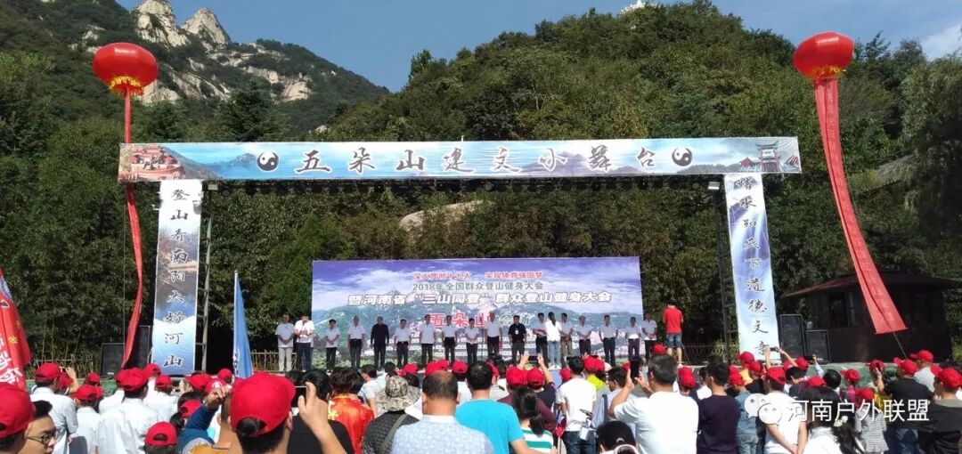 9月22日, 2018年全国登山健身大会暨河南省第八届“三山同登”大会(南阳五朵山分会场)在南召县五朵山风景区隆重举行,拉开了全民登山健身运动的序幕,弘扬了奥运精神,增强了全民健身意识,展示了“原生山水 远古南召”的旅游品牌。河南省体育局群体处处长赵峻、河南省旅游局机关党委副书记杨文波、南阳市人民政府副市长刘庆芳、南阳市体育局党组书记、局长畅强、中共南召县委书记刘永国、南召县人大常委会主任朱晓栓、南召县政协主席张智广、南阳市旅游局党组成员、副局长何清印、南召县人民政府副县长赵群梅、南召县旅游外事局局长柳绘、南召县体育中心主任马玉江、四棵树乡党委书记王浩、五朵山集团董事长王亚洲等领导出席活动开幕式,来自全国的300多名专业登山运动员和1000多名群众登山爱好者齐聚南阳五朵山,领略道教文化,尽享山水美景,品味登山乐趣,决战北顶五朵山。