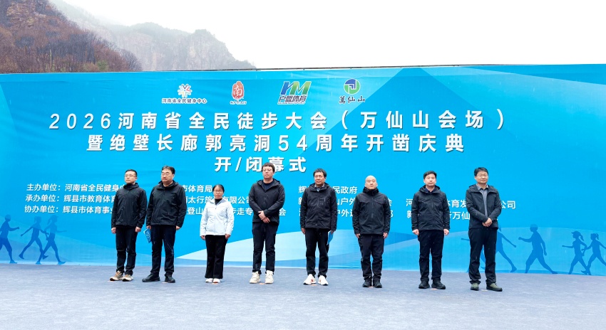 巍巍太行,细雨濛濛;绝壁长廊,健步如飞。 3月14日,“2026河南省全民徒步大会万仙山会场暨绝壁长廊郭亮洞54周年庆典”活动在新乡南太行万仙山景区盛大举行。本次活动深入贯彻全民健身国家战略,积极响应“跟着赛事进景区”的号召,将全民健身的火热激情与南太行的壮美山水、厚重的红色精神深度融合,为“十五五”开局之年的群众体育工作写下生动注脚。