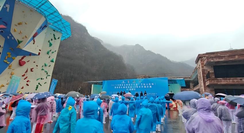 上午10时许,活动在细雨中拉开帷幕。新乡市体育局副局长张德君出席仪式并宣布活动开幕。随着发令枪响,来自全省各地的数千名徒步爱好者冒雨出发,沿着蜿蜒的山路前行,用脚步丈量红岩绝壁,用运动致敬“当代愚公”精神。雨雾中的万仙山更显空灵与巍峨,参与者们身着彩色雨衣,宛如一条流动的虹霓,穿梭于悬崖峭壁之间,形成了一道独特的风景线。