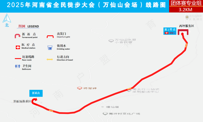 二、组织机构(拟定) (一)主办单位:河南省全民健身中心、新乡市体育局、辉县市人民政府 (二)承办单位:辉县市教育体育局、新乡南太行旅游有限公司、 新乡市登山户外运动协会、河南户盟体育发展有限公司 (三)协办单位:辉县市体育事业发展中心、郑州市登山协会健步走专业委员会、河南户盟户外运动俱乐部、南太行万仙山园区 三、时间及地点 (一)时间:2025年11月8日(周六) (二)地点:河南省•辉县市•万仙山(郭亮)景区 四、规模与群体 活动规模:2800人 参与群体:各地徒步健步类协会、登山户外类协会、院校、俱乐部,健跑团、家庭与个人。 五、活动内容 (一)报到检录 时间:2025年11月8日上午8:00-9:30 地点:万仙山景区西坪服务中心 (二)开幕式 时间:2025年11月8日上午10:00-10:15 地点:万仙山国家地质公园景区西坪服务中心 (三)山地徒步团体赛 时间:2025年11月8日上午10:16-11:20(开赛) 路线(3.2KM):万仙山景区西坪服务中心(起点)-界板场换乘区(折返) - 西坪服务中心(终点)。 (四)活动闭幕式 时间:2025年11月8日下午11:30—11:50 地点:万仙山景区西坪服务中心。 (五)大众休闲旅游健身 时间:2025年11月8日全天 地点:万仙山(郭亮)景区内。 六、活动规程 (一)遵照国家体育总局最新发布的《体育赛事活动管理办法》及省市体育部门与相关协会的相关规定执行; (二)仲裁委员会、裁判员、赛事监督员以及运动员资格审查等人员将由省市体育相关部门委派; (三)项目设置 (四)赛程路线 徒步团体赛路线(3.2KM):万仙山景区西坪服务中心(起点)- 南坪服务中心 - 界板场换乘区(折返) - 南坪服务中心 - 西坪服务中心(终点) 七、活动奖励 (一)本次赛事活动将根据参与规模、团队形象、服装统一度、团队协调度等综合因素评选最佳团队奖和优秀组织奖及奖牌; (二)专业组所有人员在关门时间内完成全程者,均将颁发官方的《完赛证书》。 八、活动费用 山地徒步团队赛组别:29元/人。 费用包含:景区门票、景区保险、景区内指定往返交通车、完赛证书、号码布、饮用水。 山地徒步大众组组别:39元/人。费用包含:景区门票、景区保险、景区内指定交通车。 备注:活动期间,在万仙山景区内推出的大型实景剧演出《太行山传奇》,将对所有参加活动团队和人员给予特殊政策,如需观看者,可联系组委会办理。 九、报名报到 (一)报名方式 1.报名方式: 线上报名:搜索与登录“豫体汇”官方微信平台报名即可。 线下报名:0371-65560236;潘老师18639556218;董老师:15637112956 (二)报名时间 赛事规程发布之日起至11月6日下午18:00前为报名时间,逾期不予受理。报满即止。 (三)报到时间 11月8日上午8:00——9:30接受报到。 (四)报到地点 万仙山(郭亮)景区游客服务中心门口处。 十、报名须知 (一)专业组参赛者须在11月8日上午9:50前完成报到手续和检录,并按照赛事组别标识区域列队; (二)在活动中,因个人身体及其他个人原因导致的人身损害和财产损失,由参与者个人承担责任; (三)所有参赛人员,均需签署《自愿参赛责任书》,并在报到时提交责任书。团队责任书需由队长提供打印并签署由参赛队员名字的责任书才有效; (四)因不遵守赛事各项规定和规则而发生的任何意外后果,一切责任自负,组委会概不承担任何法律和经济责任; (五)本活动禁止包含但不限于先天性心脏病和风湿性心脏病患者、高血压和脑血管疾病患者、心肌炎和其它心脏病患者、冠状动脉病患者和严重心率不齐者、糖尿病患者、孕妇等其他不适合运动的疾病患者,如有隐瞒,责任自负; (六)活动组织方免费拥有所有参与本次活动人员的肖像使用权,任何参与人员及其家属与代理人不得有诉求。 (七)所有参赛人员可凭号码布乘坐景区内官方的景区中巴交通车(不含私人小交通车); (八)山地徒步大众组报到时间为11月8日上午8:00-12:00,过时不予办理。 十一、保险 (一)本次赛事活动由组委会统一购买大型活动公众责任险。 (二)参赛者须自行购买个人意外险,否则,一切责任自负。 十二、本赛事活动解释权属于大会组织方,未尽事宜另行通知。